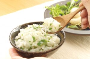 ③ お米がやわらかくなったら七草を加え、1〜2分さっと火を通す。