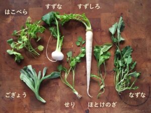 (せり・なずな・ごぎょう・はこべら・ほとけのざ・すずな・すずしろ)