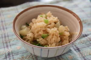 ④炊き上がったごはんに③のダイコンの葉を加え、全体をふんわり混ぜ合わせたら完成。